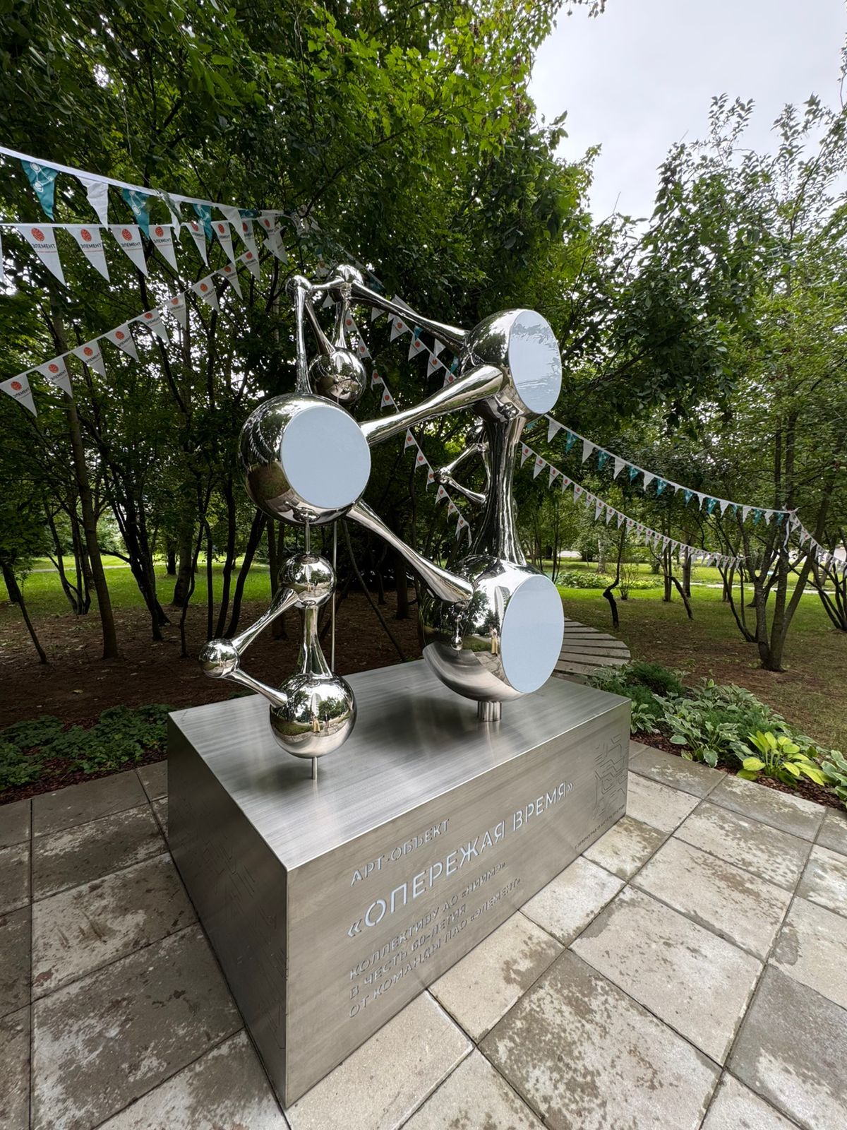 Артобъект из нержавеющей стали в форме языков пламени с металлической сферой внутри